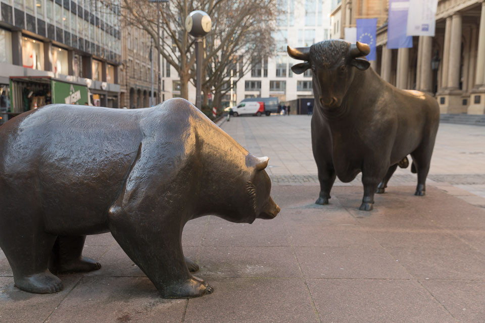Bulle und Bär vor der Börse in Frankfurt / Main