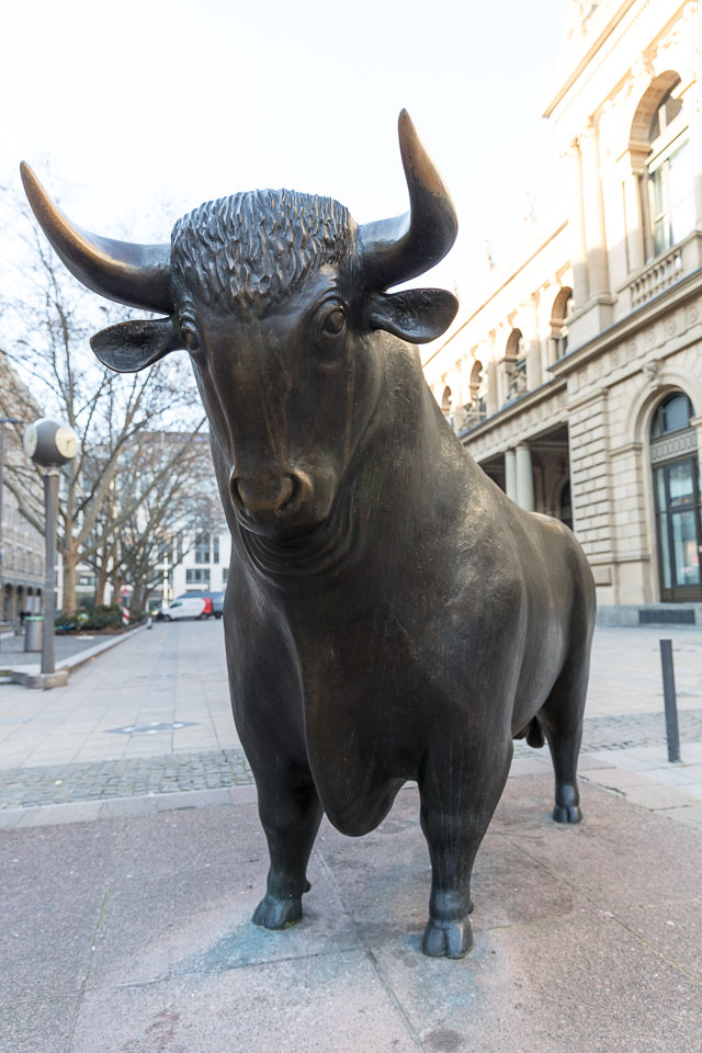 Bulle vor der Börse in Frankfurt / Main